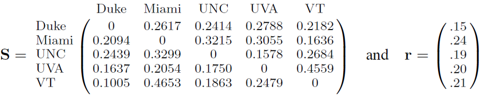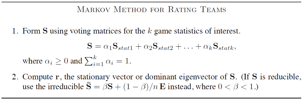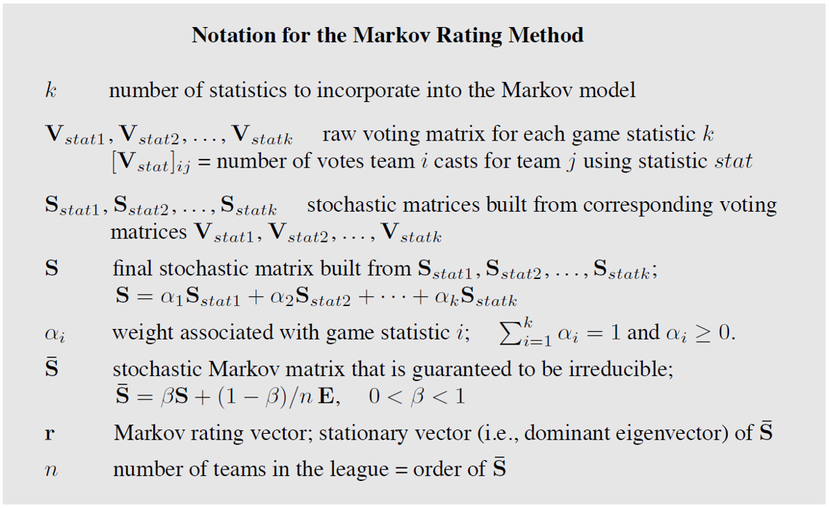 Ch. 6 of Langville-Meyer’s textbook is dedicated to Markov chains in sport prediction