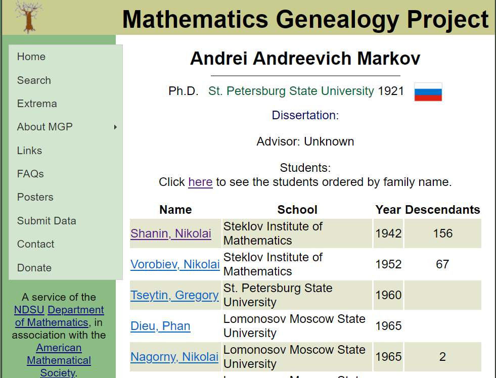 Markov begot Shanin, Shanin begot Gelfond, and Gelfond begot me.