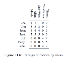 In Lin. Algebra the matrix “forgets” the labels for rows/cols., e.g., Joe/1st row, The Matrix/1st col., Alien/2nd col. etc.