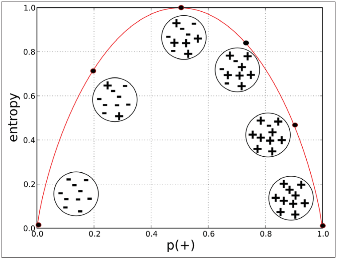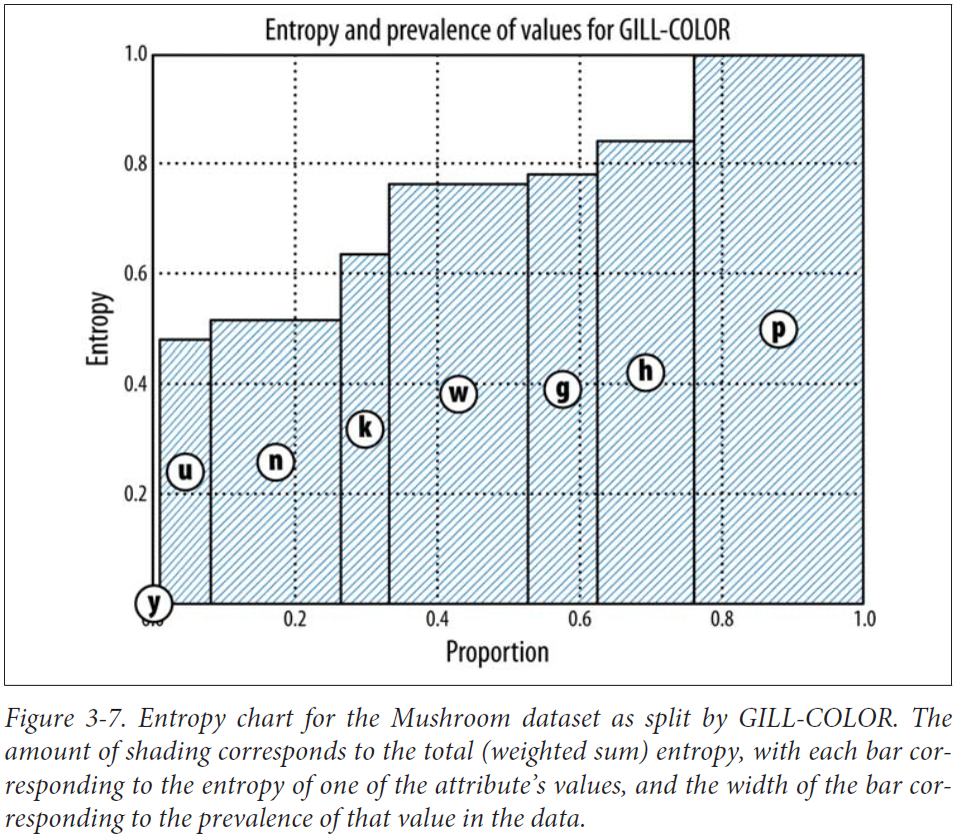 IG(parent, children) = H(parent) - \([prop(c_a)\cdot H(c_a) + prop(c_b)\cdot H(c_b) + \dots ]\)