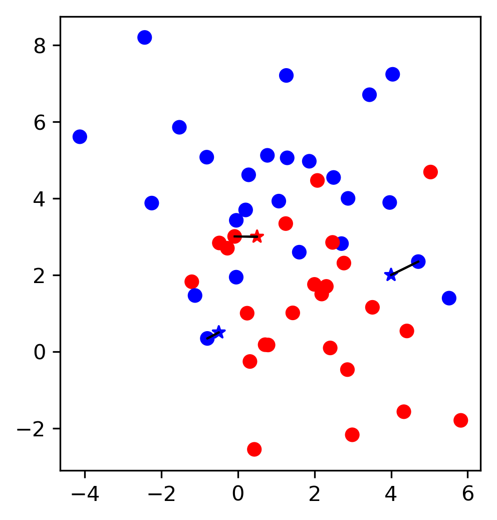With just two numerical dimensions, datapoint similarity can be interpreted as simple Euclideian distance.