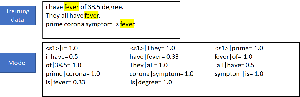 Probs. are extracted from frequencies of co-occurence in corpora.